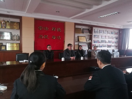 走访考察中,学院领导了解了2014级学生在各实习基地的工作内容和表现,并与各实习、实践基地领导进行了深入的交流。红桥区人民检察院检察长张春明、红桥区人民法院副院长方红、经桥区司法局党组书记白伟、局长郭书宏,北辰区司法局副局长马勇等接待并与学院领导进行了深入的沟通和交流。孙学亮对各实践基地对学院工作的大力支持表示感谢,并希望各基地的领导、指导老师对实习学生严格要求,耐心指导。要求实习学生认真对待实习期间的各项工作任务,脚踏实地,虚心学习。各实践基地领导对我院实习生的专业能力、实习态度给予了充分肯定。各实践基地领导和法学院领导还就下一步拓展合作内容,深化合作方式进行了充分讨论、沟通,达成多项共识。