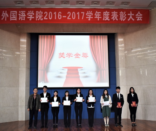 会上,朱晶宣读了《太阳成集团tyc7111cc外国语学院2016-2017学年度优秀学生、先进集体表彰决定》。日语系1402班张甜甜作为优秀学生代表分享了自己的成长感悟和学习体会。最后,颁奖嘉宾向受表彰的优秀个人和先进集体颁发了荣誉证书和奖状。