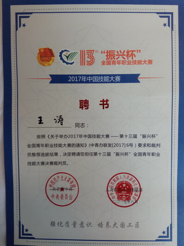 8月24日,由共青团中央、人力资源社会保障部联合主办的2017年中国技能大赛——第十三届“振兴杯”全国青年职业技能大赛决赛在辽宁沈阳落下帷幕。按照大赛相关要求和裁判员聘任条件,设计学院动画系主任王涛老师受聘担任本次大赛动画制作员项目决赛的裁判员。