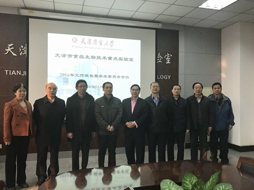 12月11日,天津市食品生物技术重点实验室2016年度学术委员会会议在4号实验楼A212举行。学术委员会主任委员南开大学周军教授、天津国际生物医药联合研究院周泽奇教授、中国医学科学院放射医学研究所刘强教授、细胞产品国家工程研究中心张磊教授,生物技术与食品科学学院张坤生教授,科技处处长杨传民教授,姜子涛教授和王素英教授及部分实验室人员出席了会议。会议由杨传民主持。