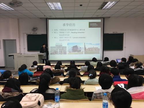 分享会上,芦熹坤从“求学经历”、“美丽新西兰”、“林肯大学”、“我的体验”四个方面向同学们介绍了新西兰的地理与文化、林肯大学及其食品专业的发展情况以及她的成长经历。其中,着重分享了她在林肯大学的校园学习和生活体验,包括海外大学的申请方法、申请条件等,使同学们更加近距离地了解到海外留学生活的点点滴滴。分享会上副院长关文强教授也根据芦熹坤的成长经历对同学们大学期间的学习提出了建议和要求。