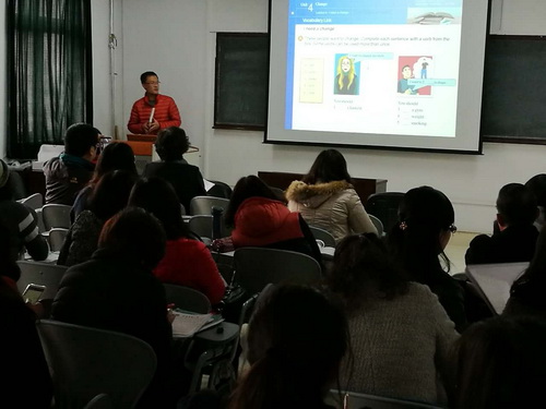 各系推举李莉、杨海燕、韩嵬、张阳四位老师分别就新视野大学英语第一册、第三册,视听说教程第一册、第三册,以具体单元为例,对如何掌控和处理教材内容,采取何种授课方法,以及遇到可能出现的问题如何解决等,进行了各具特色的讲解。