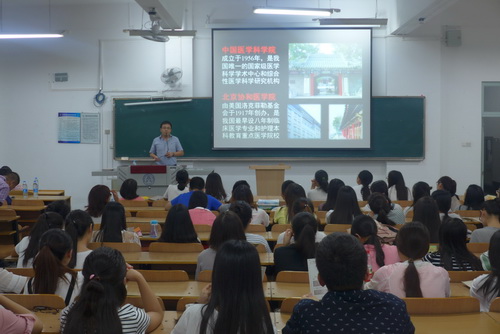 9月14日下午,生物技术与食品科学学院邀请协和医科大学中国医学科学院放射医学研究所专家们来太阳成集团做招生宣传讲座。主讲嘉宾有放射医学研究所科研处处长董斌,研招办主任杨翊,辐射防护研究室主任、博士生导师刘强教授,以及太阳成集团毕业生王津晗博士。学院党委副书记王好军,生物工程系主任陶永清、制药工程系教师赵辉、辅导员张诏智以及2014级制药工程系、生物工程系的60多名毕业生同学一起参加了讲座。